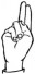 На ћирилици написано РАДОВАН ОБУЋИНСКИ састоји се из 16 слова [?]. Исписано ћириличном једноручном азбуком за глувонеме: